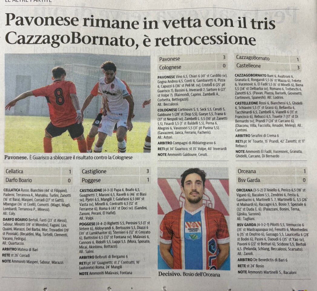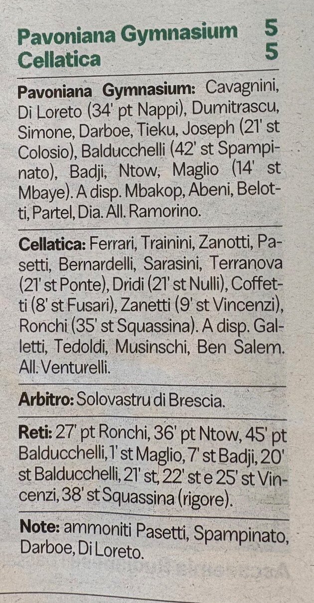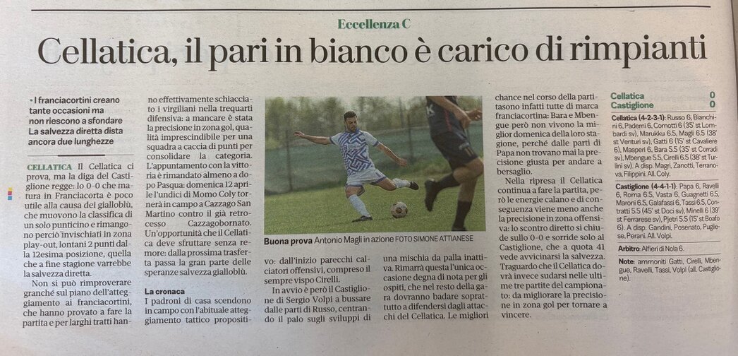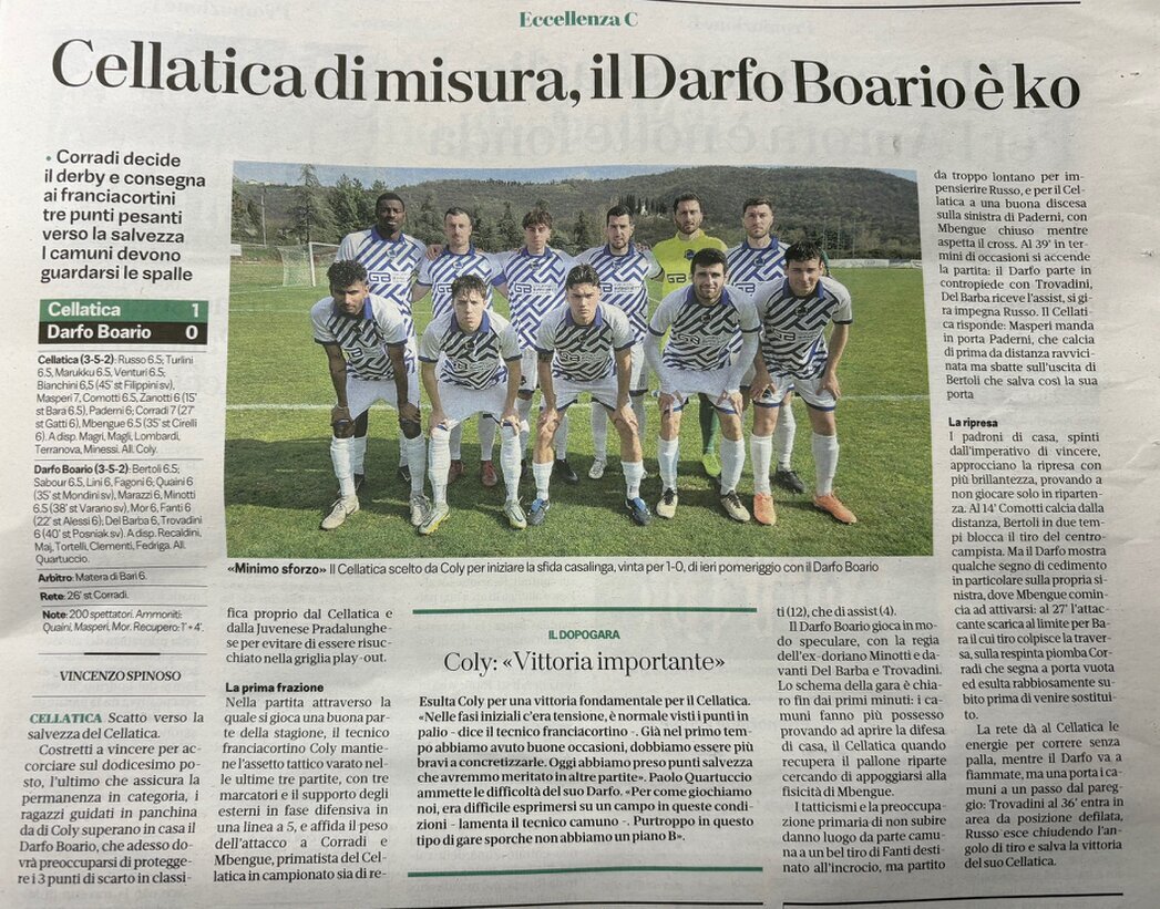 Eccellenza Cellatica-J.Pradalunghese 2-0
