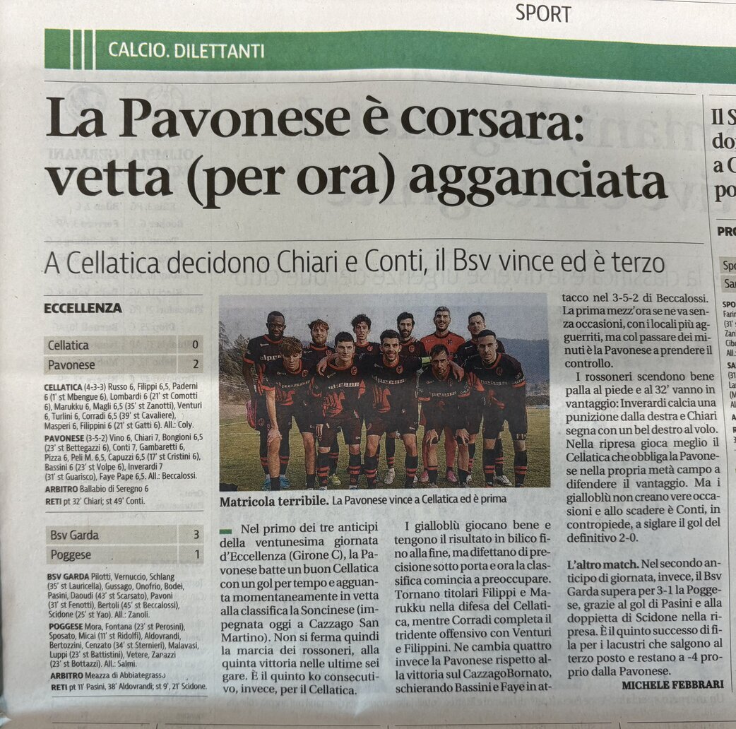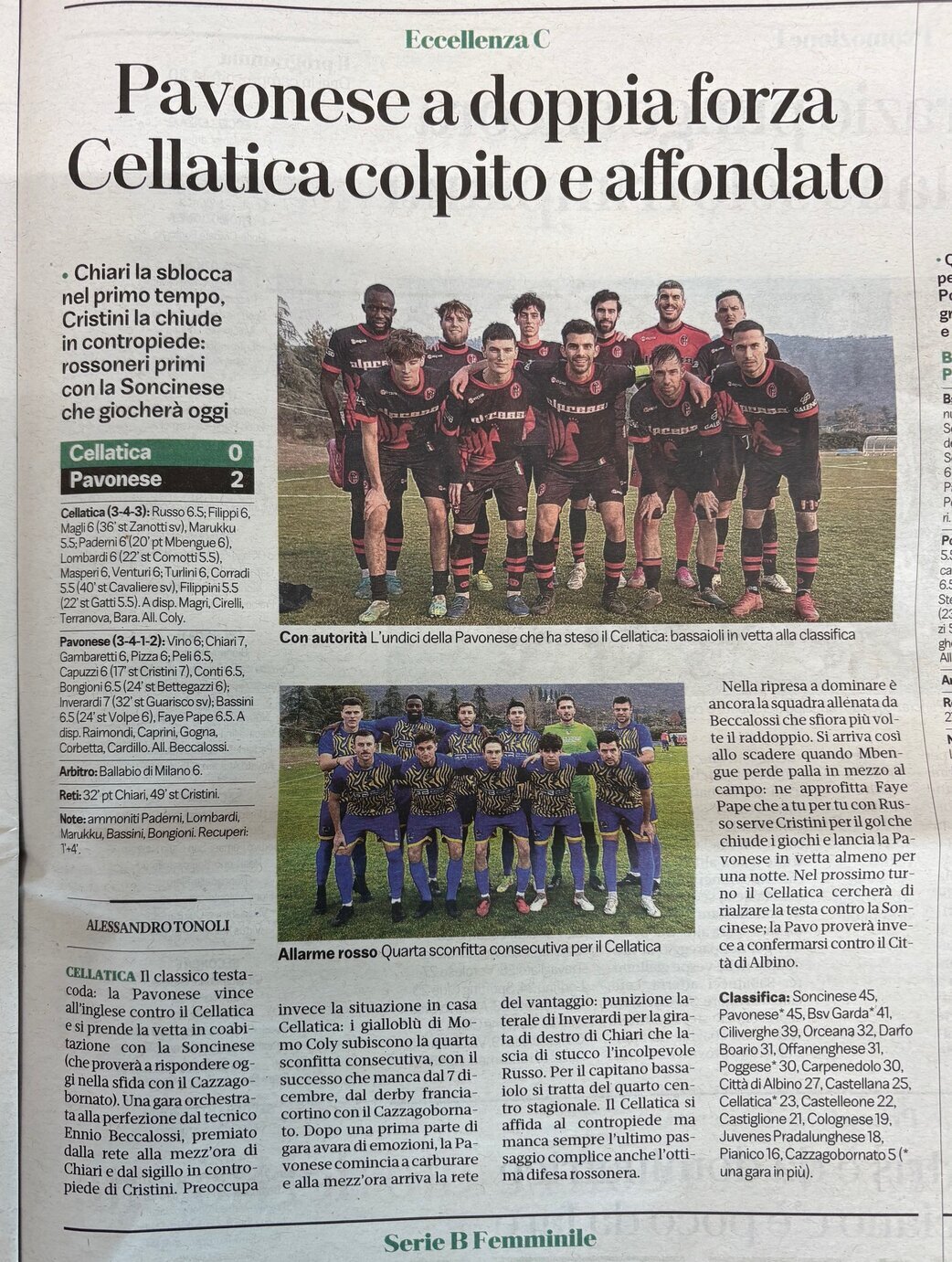 Eccellenza | 0-2 | Cellatica | Pavonese | |||