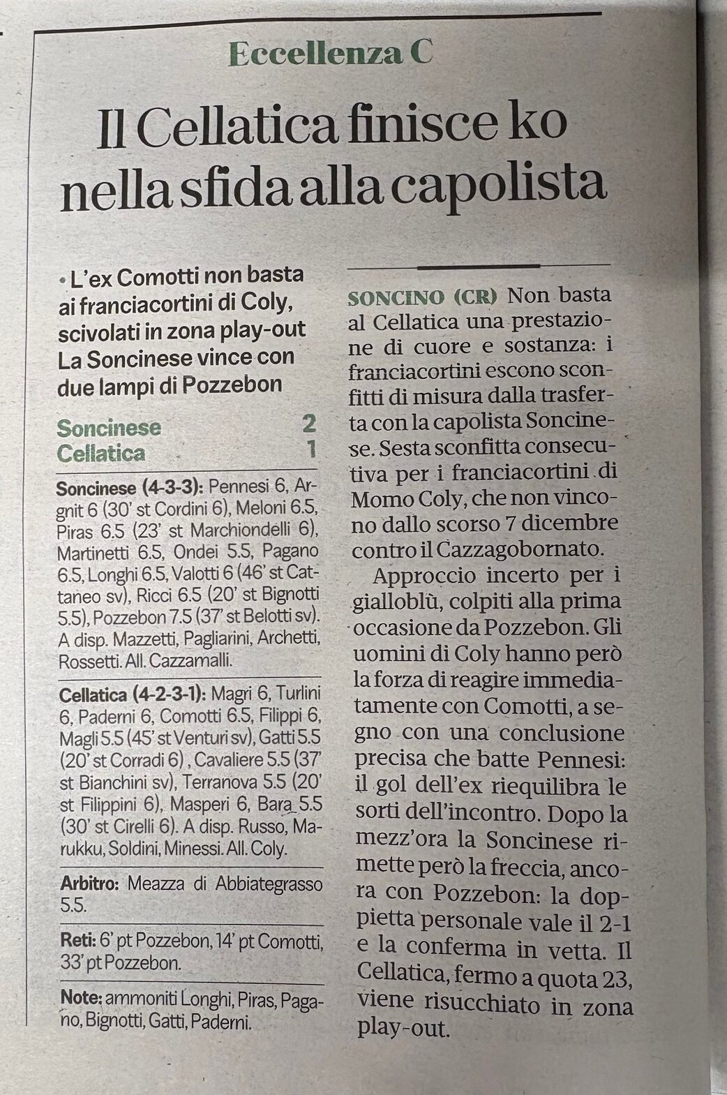 Eccellenza | 2-1 | Soncinese | Cellatica | |||